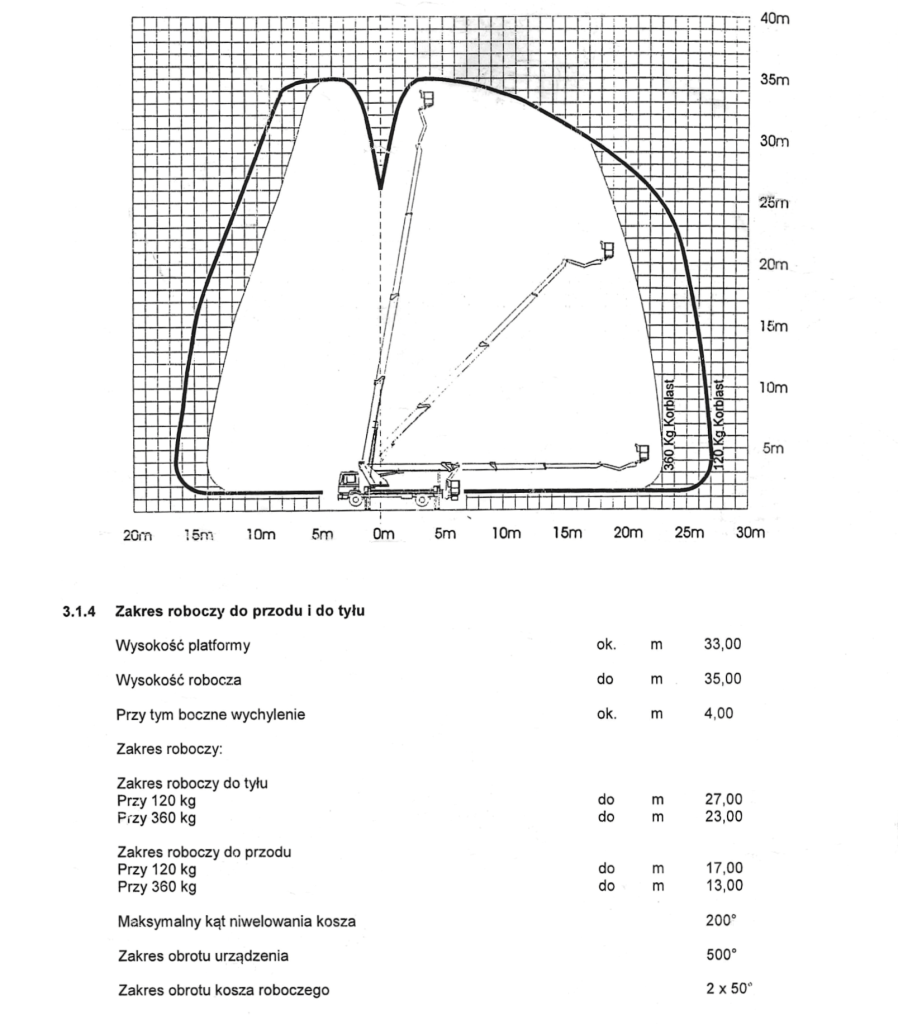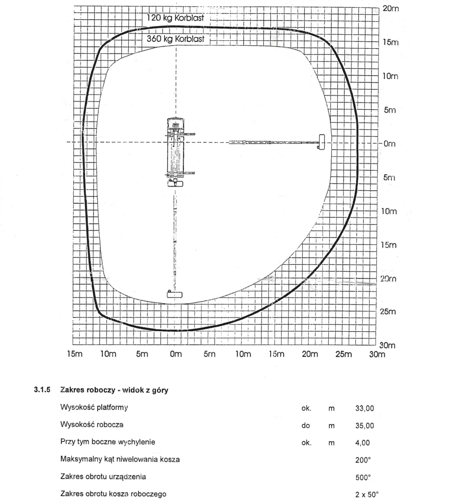 Podnośnik koszowy z operatorem na wynajem Man Wumag 35m